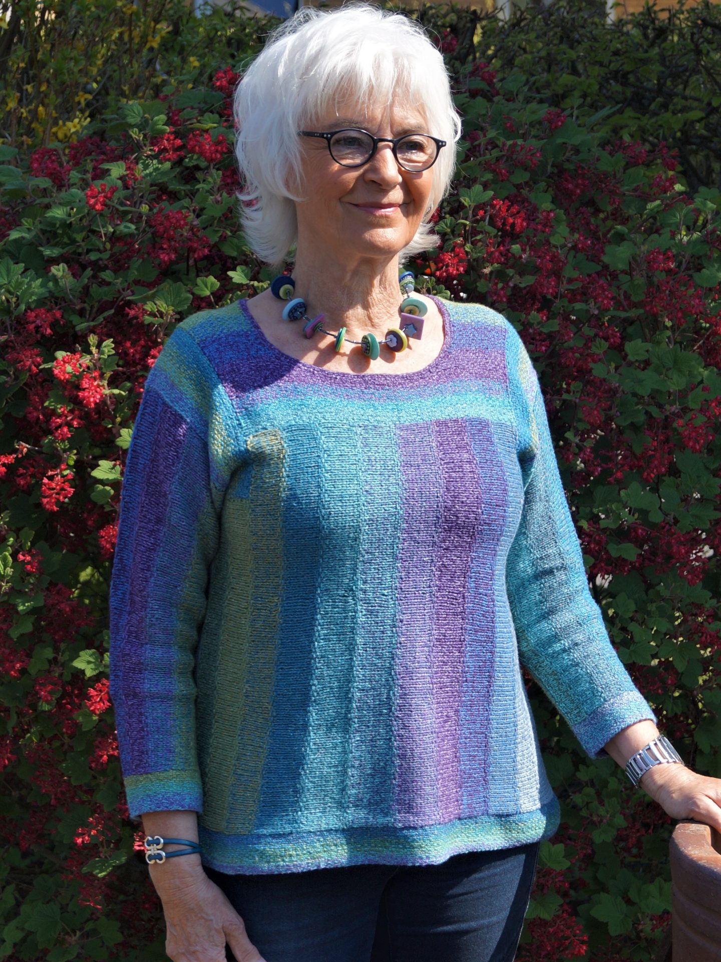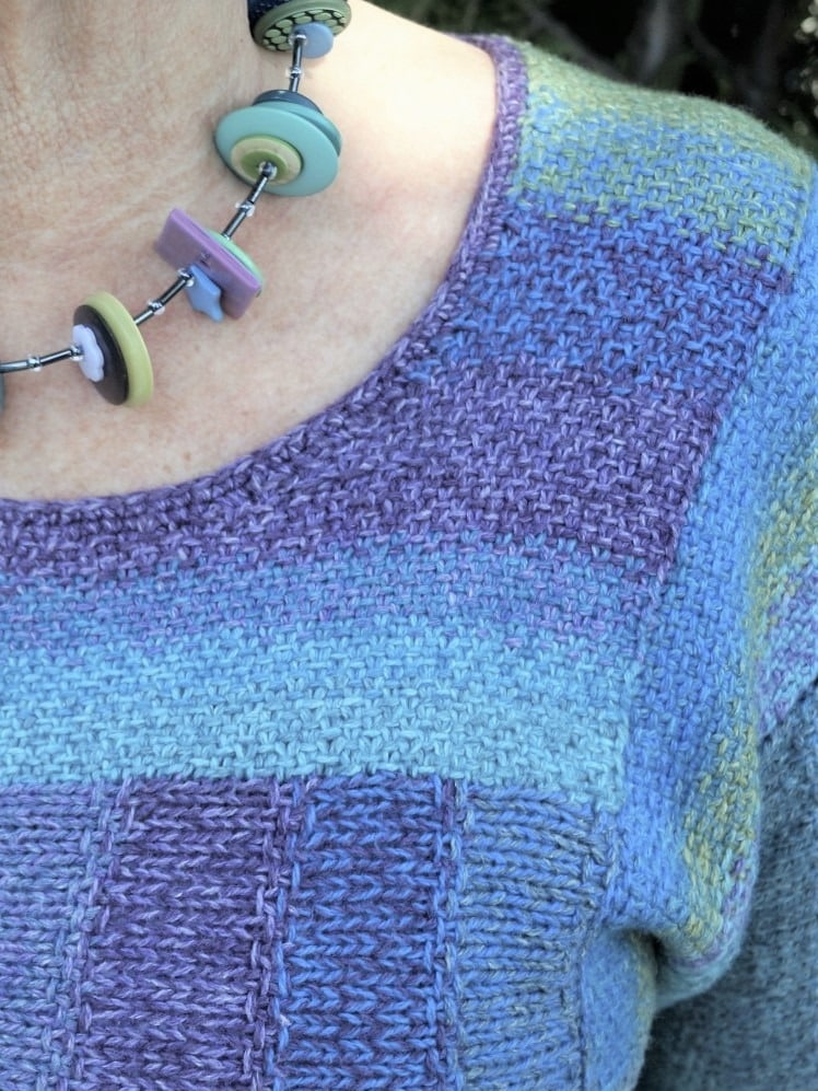 Striped sweater in mosaic knitting with a slight A-line