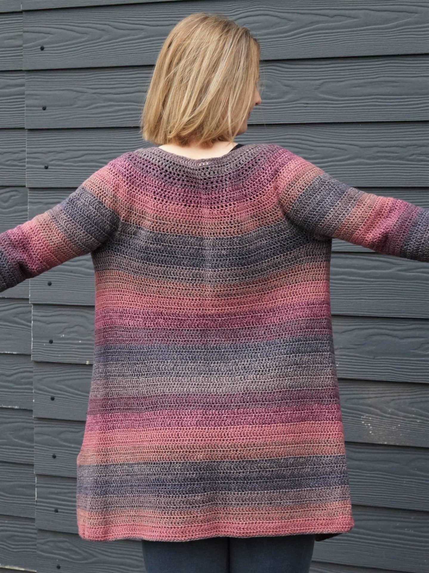 Farver i cardigan: Cocoa – Blackcurrant – Casis – Plum – Rosewood – Denim