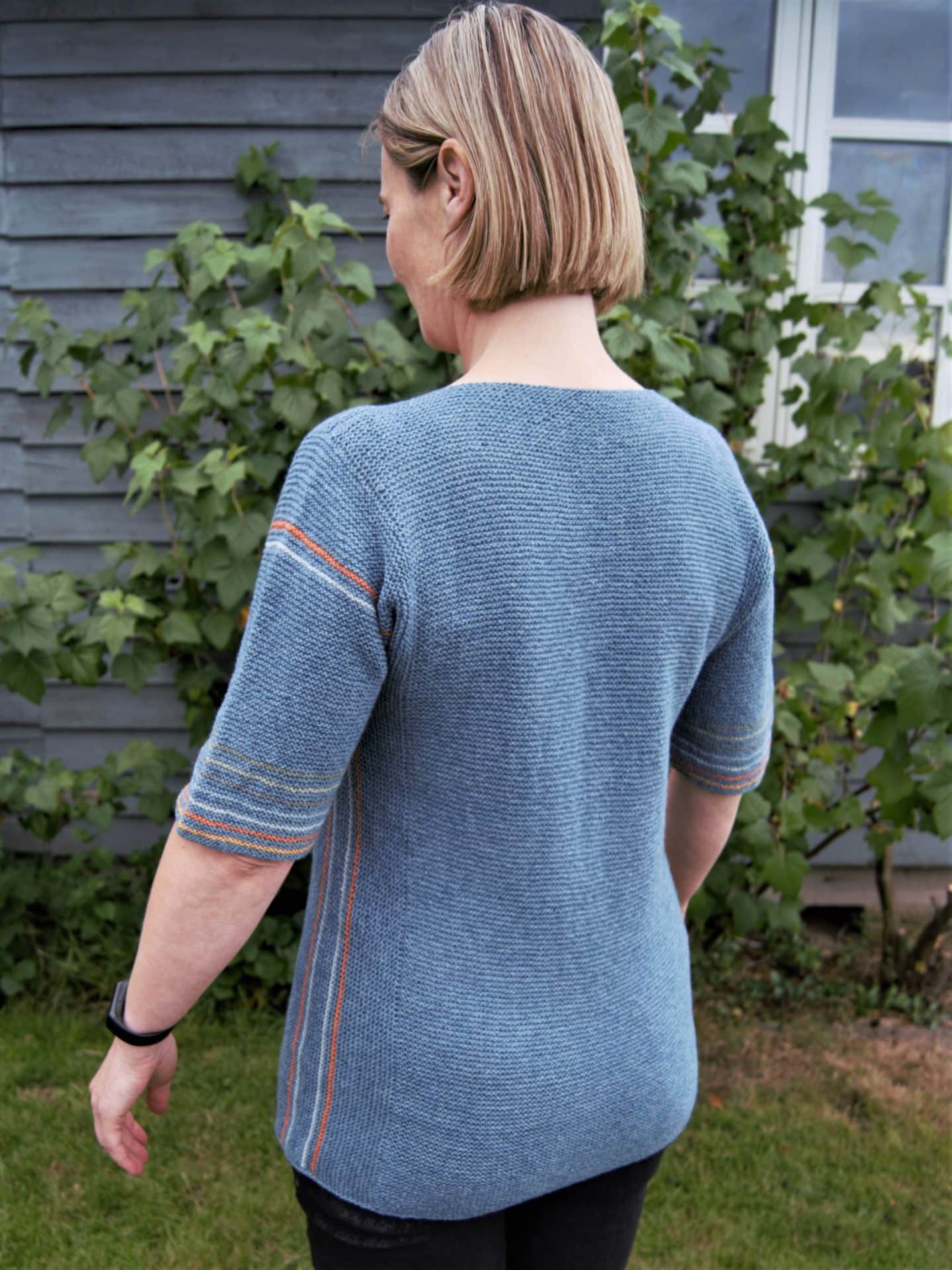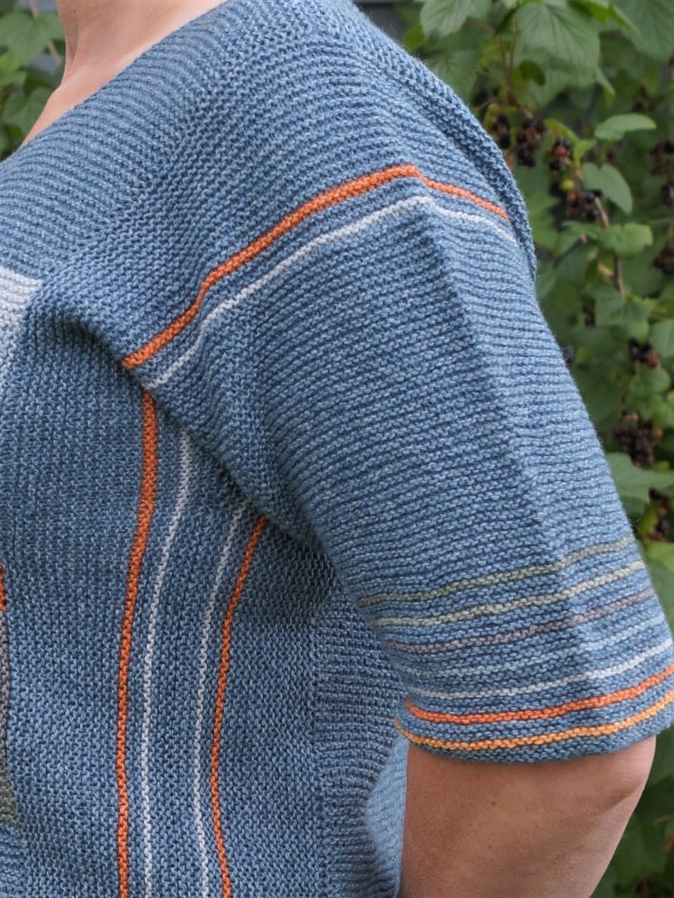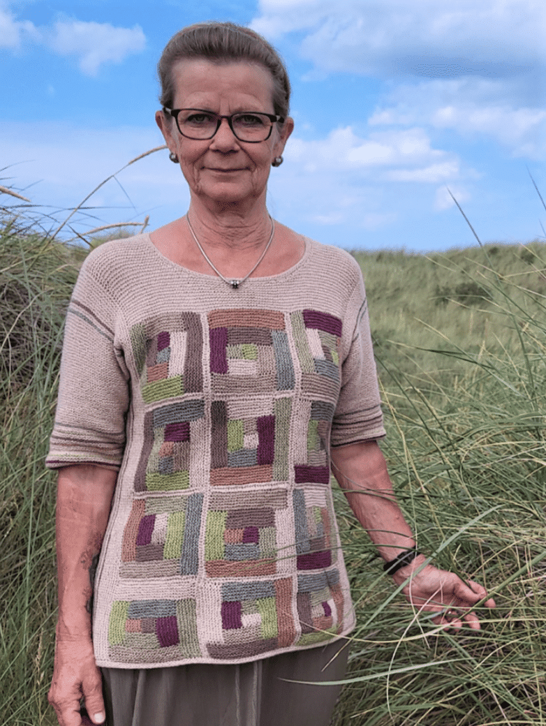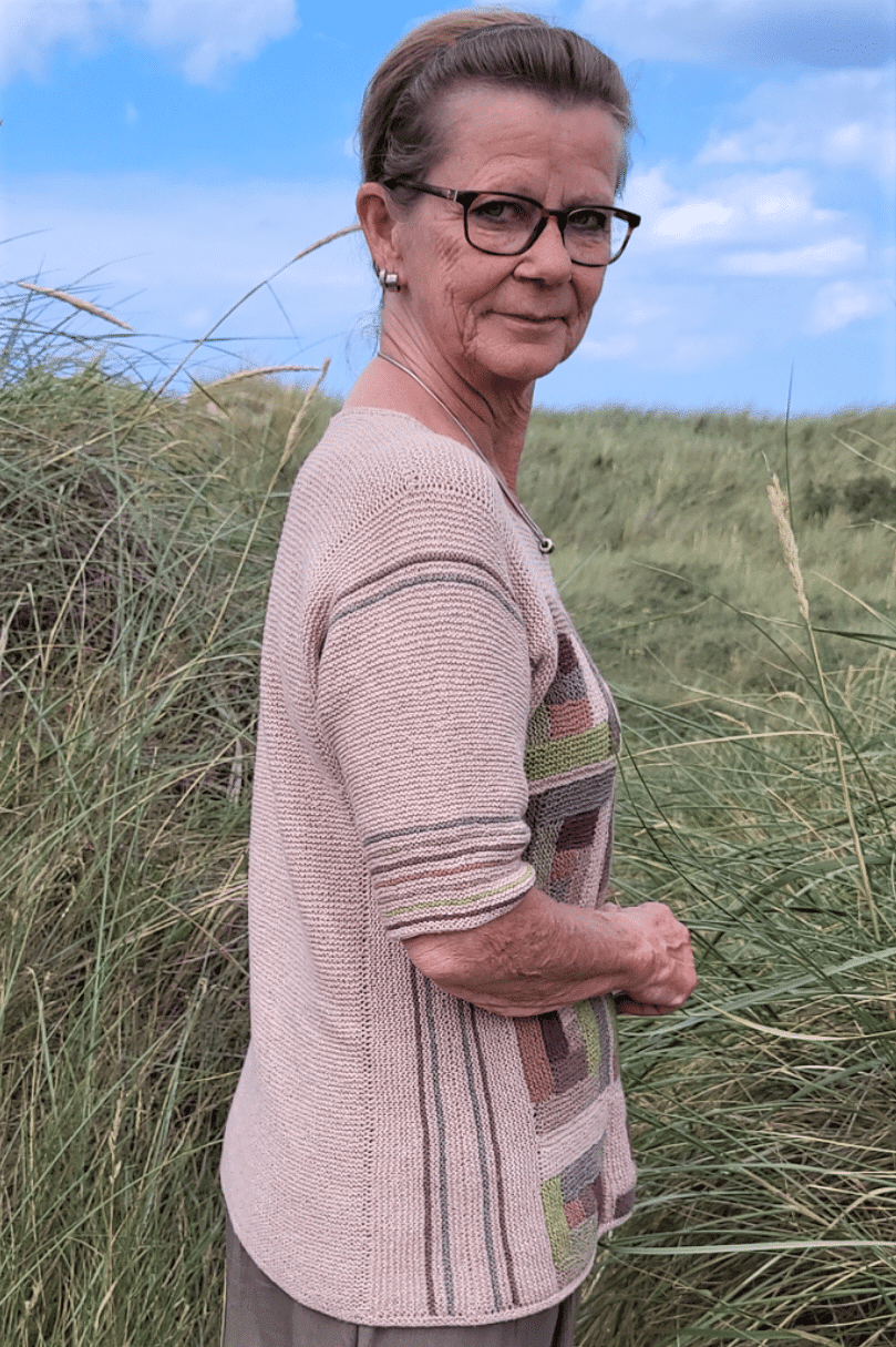 Det er 9 farver i blusen. Bundfarven er Marlin.