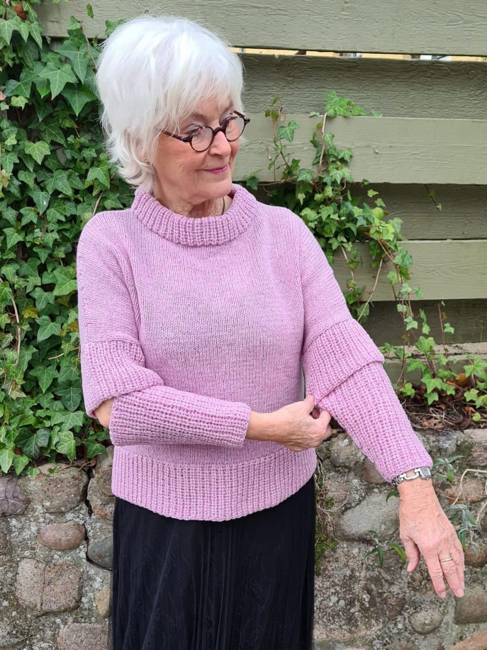 Strikket i dobbelt Supersoft – her er brugt Rosebud.