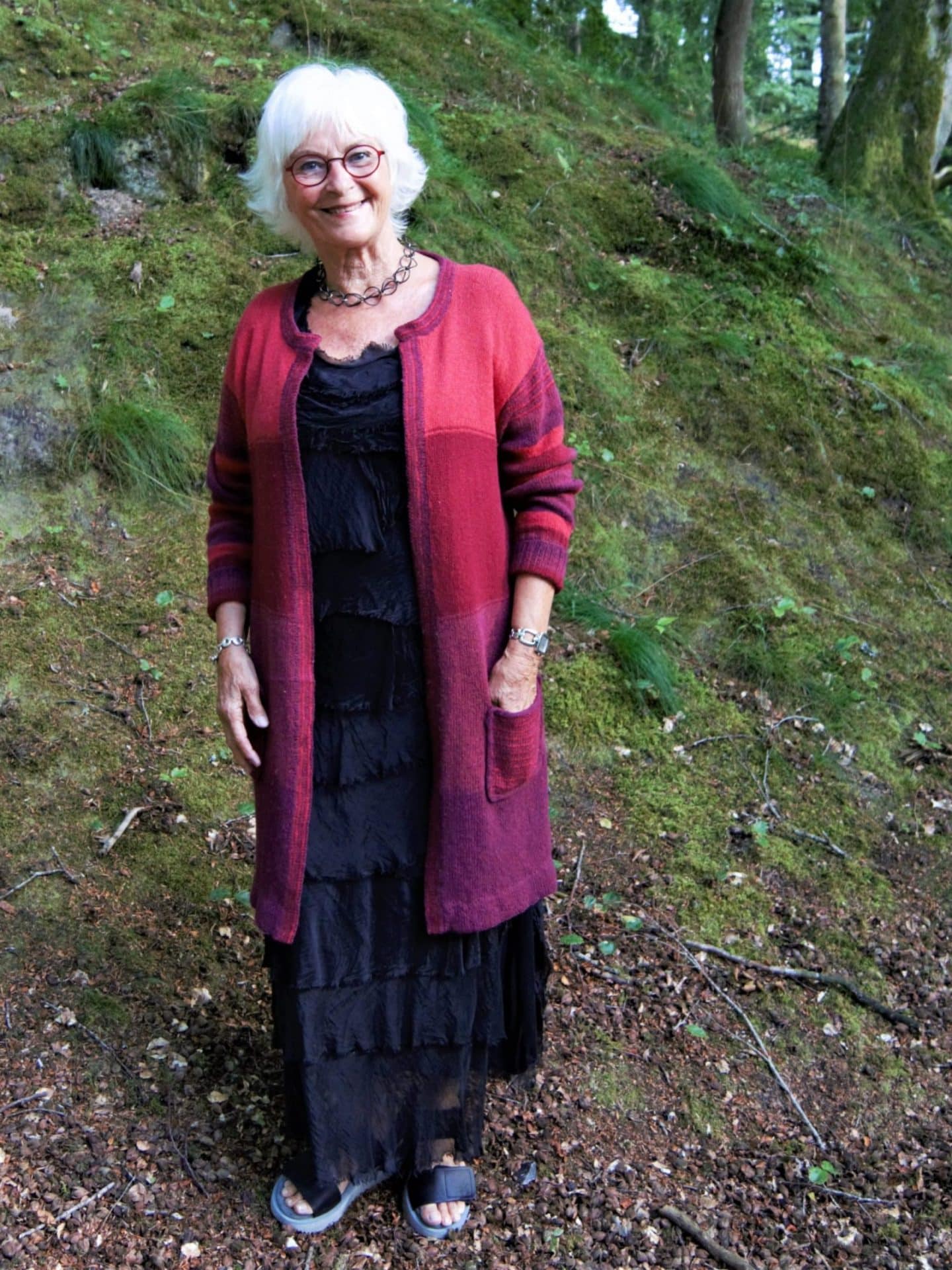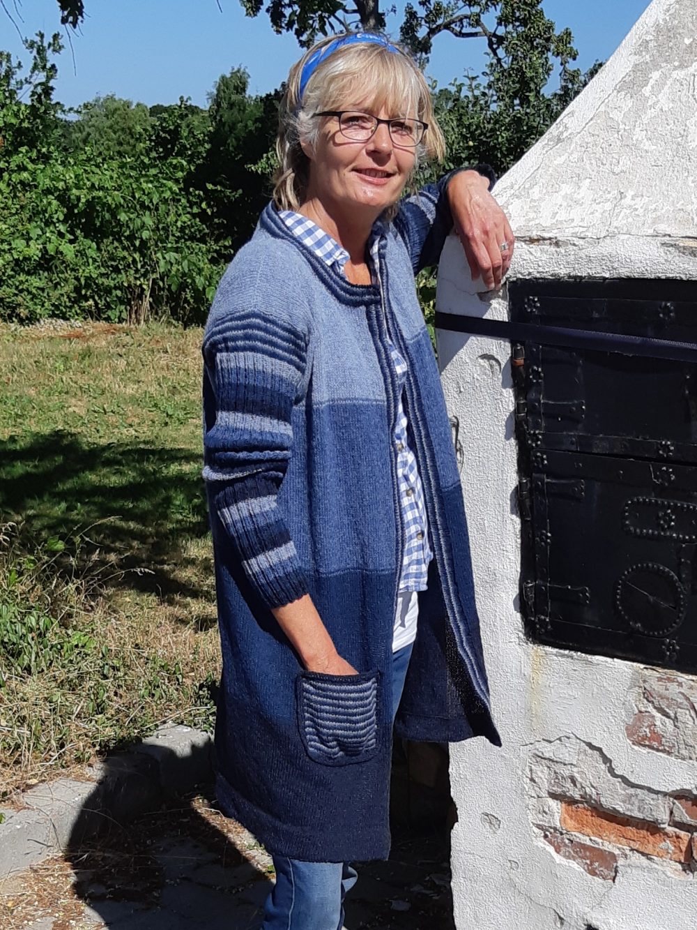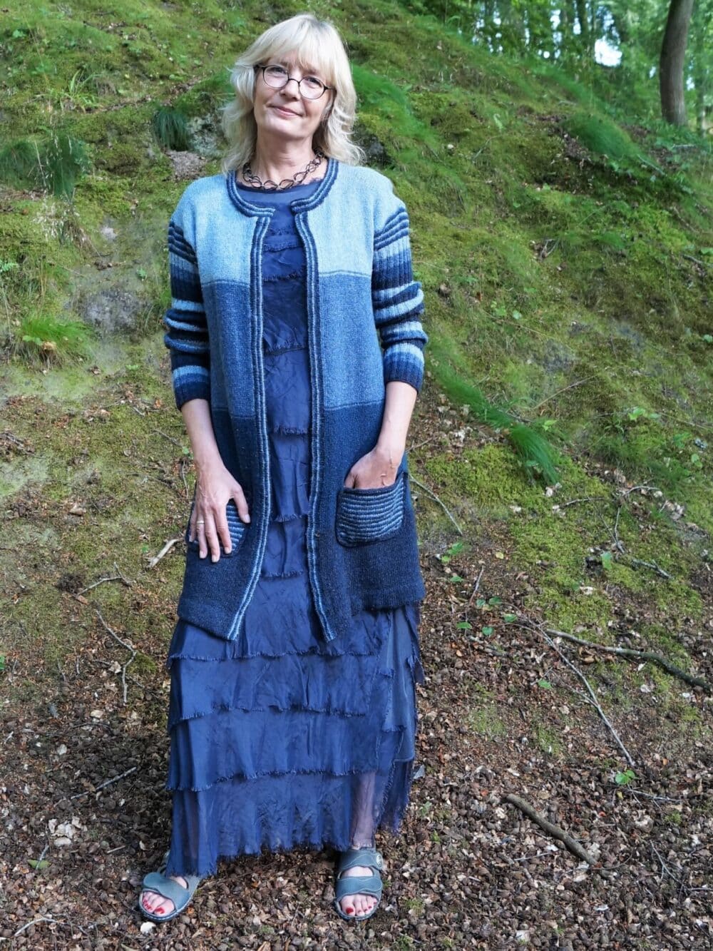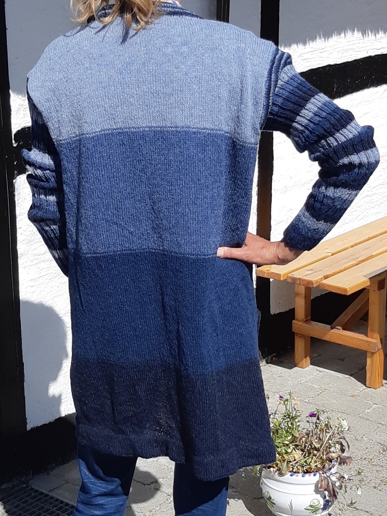 Lang åben cardigan med glat- eller ribstrikkede ærmer