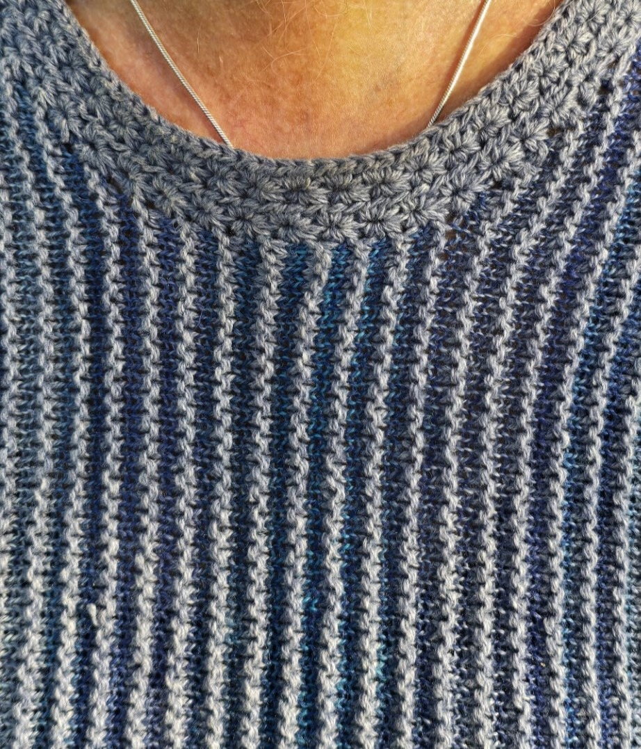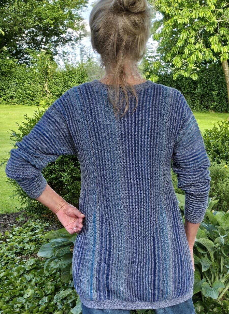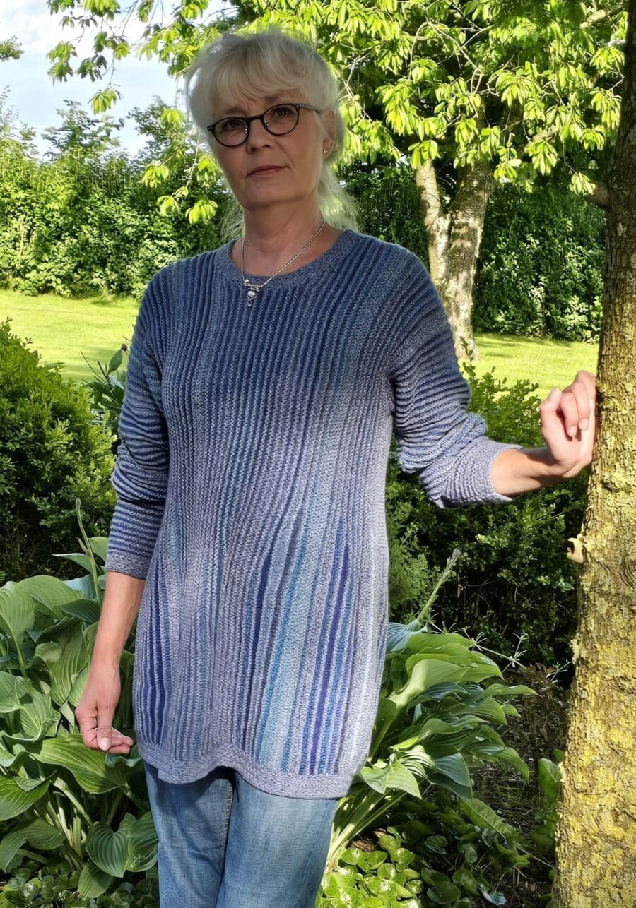 En lækker bluse, hvor strukturstrik og hækling kombineres (hækling kan erstattes med strik, som fremgår i opskriften også)