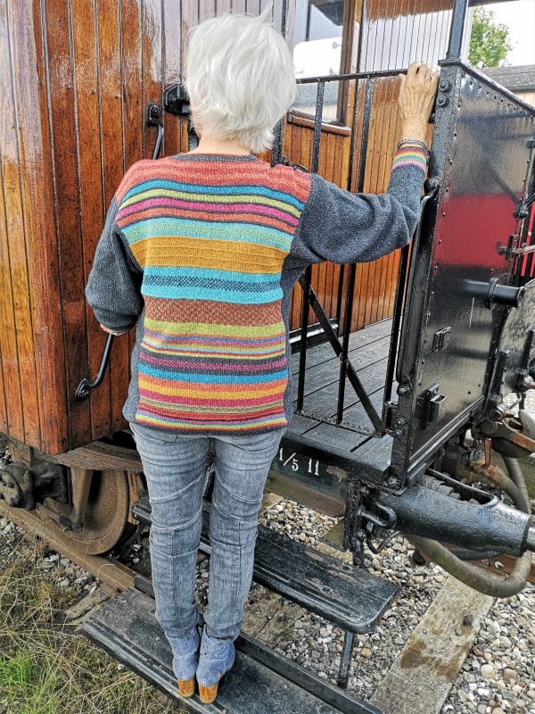 Rundpinde nr. 3- 60 cm lang. Kort Rundp nr. 2,5 til halskant og ærmemanchet.