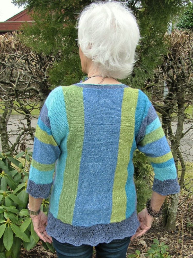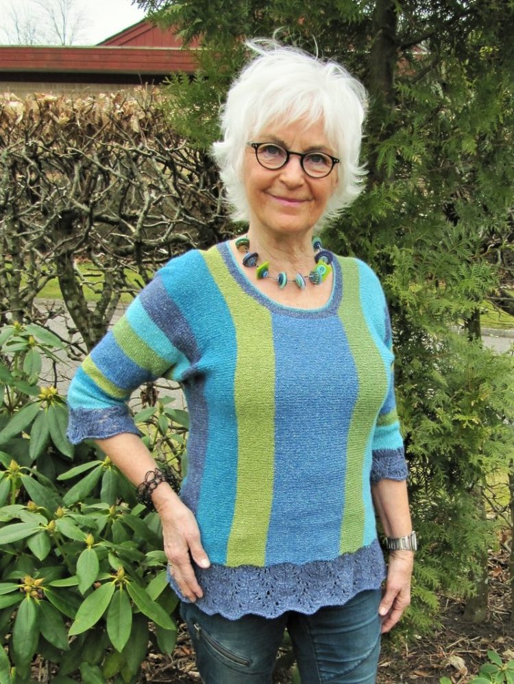 Strikket i enkelt garn på p 3,5. Bregnebort p 4,0