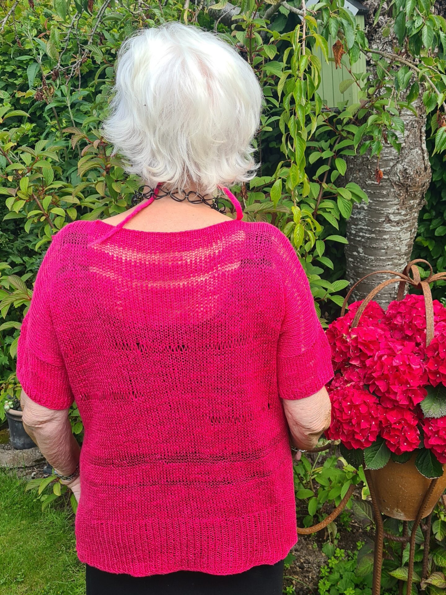 Strikket i dobbelt garn på pind 4,5 og 5 (rundpind)